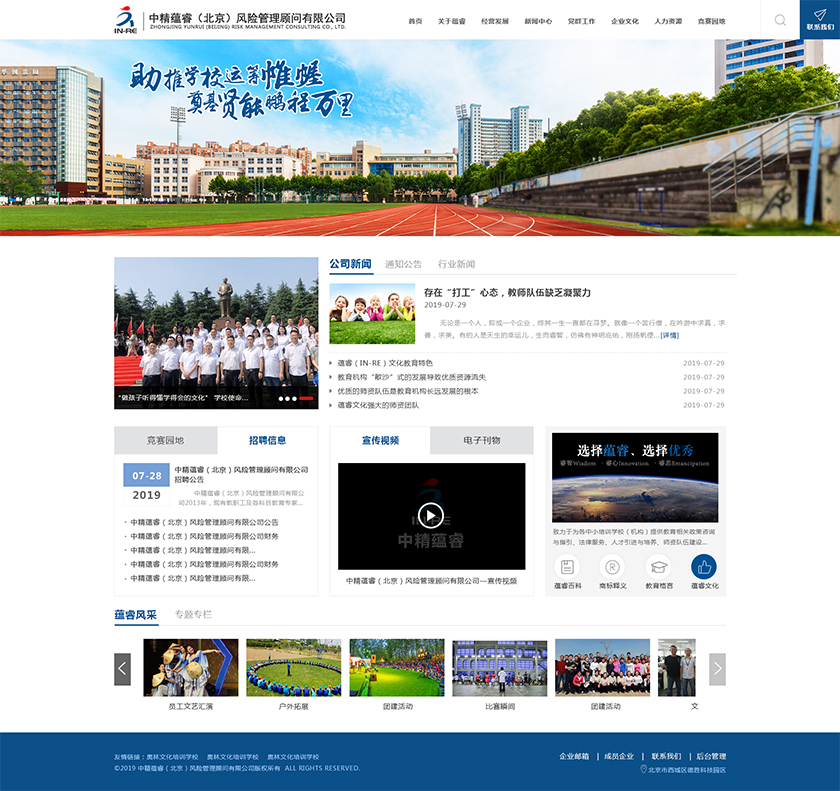 Project Description 中精蕴睿(北京)风险管理顾问有限公司2013年,现有教职工及各科目教育专家80多人,致力于为各中小培训学校(机构) 提供教育相关政策咨询与指引、法律服务、人才引进与培养、师资队伍建设与培训、教学教研与学科创新、市场营销企划、文化 理念塑造与品牌输出的专业化教育管理全方位的综合服务。 Official website address 大同http://in-re.com/ I want to share